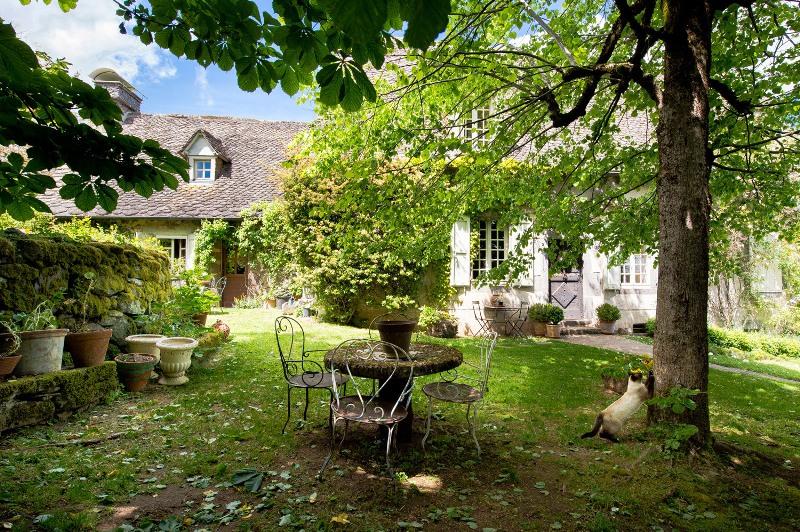 Maison typique de Xaintrie entre Dordogne et Monts du Cantal proche de la cité médiévale de Salers. Grande cheminée "cantou", souillarde, toit de lauzes, jardin soigné clos de murs de pierres. "La suite du journalier" offrant une magnifique vue dans petite maison indépendante avec sa cheminée (1 lit 1 personne) coin lecture, TV, à l'étage 1 chambre (1 lit 160) avec salle d'eau, WC séparé.
