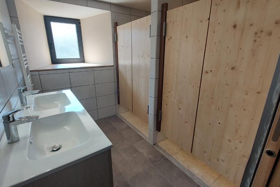 La salle d'eau, avec ses deux belles douches à l'italienne et sa double vasque, combine confort et praticité.