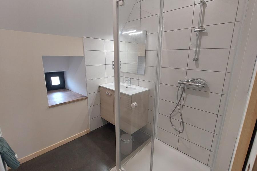 Le reste de l'étage est occupé par une chambre et une salle d'eau attenante. Le gîte est par ailleurs équipé d'un lave-linge et d'un sèche-linge.