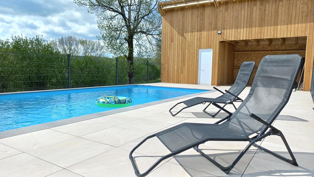 A l'extérieur, dans l'enceinte de la propriété, vous pourrez vous allonger au bord de la piscine, profiter de son eau chauffée et admirer la campagne environnante. Son usage est à partager avec les propriétaires. Elle est ouverte de juin à octobre, sous réserves de conditions météorologiques.