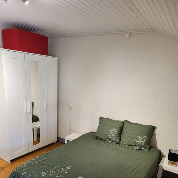 Maison de 50 m² sur deux étages composée d'une pièce principale avec un canapé convertible, un coin repas et une cuisine équipée, un balcon, deux chambres avec un lit en 140 et une armoire chacune (possibilité de fournir également un lit parapluie), une salle d'eau et un WC.