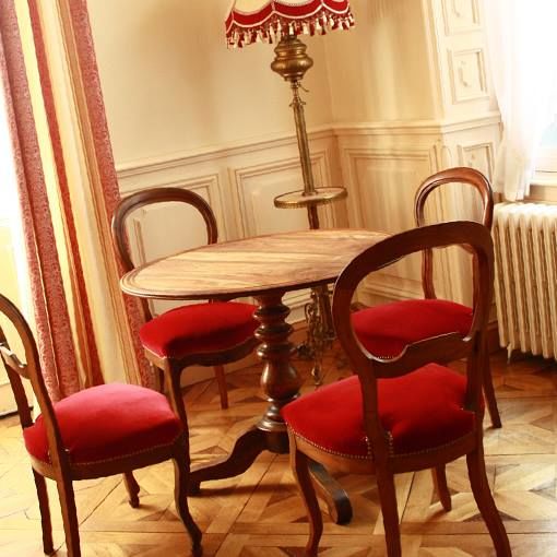 Chambres avec SB équipées d’une douche multi-jets ou avec douche et baignoire balnéo – WCI. Le salon ouvert à nos hôtes se caractérise par la décoration de son plafond doré. La salle à manger avec ses belles boiseries, est le lieu où chacun peut déguster un petit-déjeuner copieux à base de produits locaux ou BIO. Parquets en chêne, boiseries, couleurs contemporaines, mobilier ancien revisité, donnent à notre maison une ambiance particulière et raffinée.