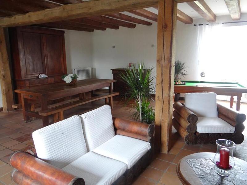 Le gîte comprend un grand séjour avec cheminée (insert), une bibliothèque, un billard, jeu d'échec, TV avec Canal +…