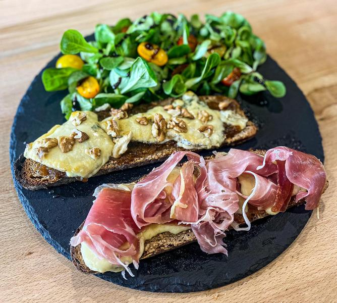 Boisson 25cl, planche de charcuterie ou flammekueche ou pizza, café gourmand