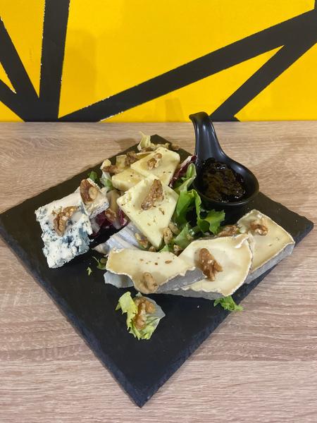 Boisson 33cl, ardoise mixte (charcuterie et fromage), dessert, café