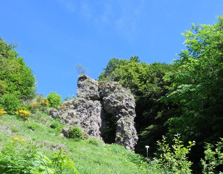 Une fois en dessous du Gîte de Lafon, prendre le chemin à gauche vers la cascade, puis continuer dans la hêtraie, au pied du Chaos de Casteltinet. Vous allez arriver à la Porte du Lion.