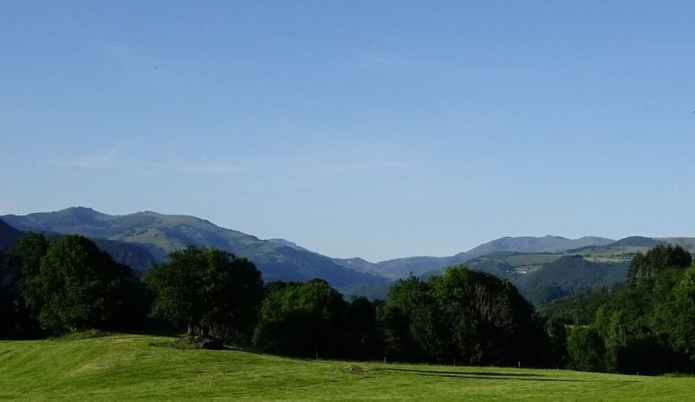 La piste se poursuit avant de rejoindre une chicane sur votre gauche : belle vue sur les Monts du Cantal.