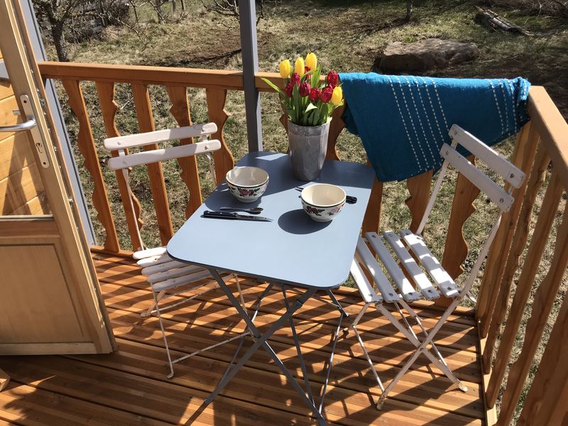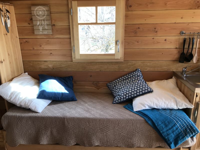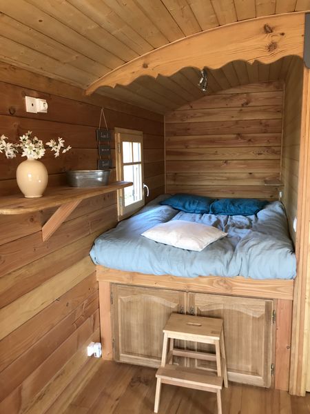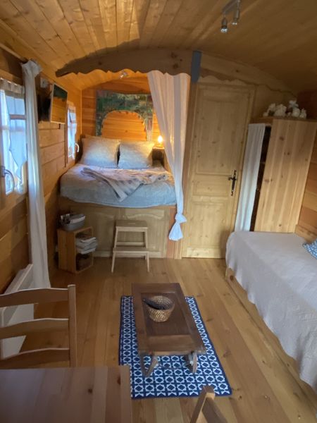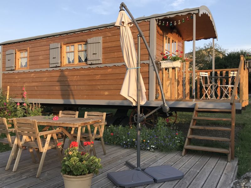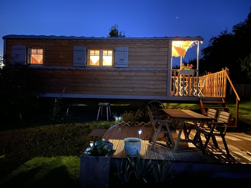 Une roulotte pour 4 personnes, tout confort avec terrasse, jardin, parking…