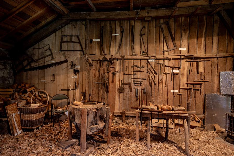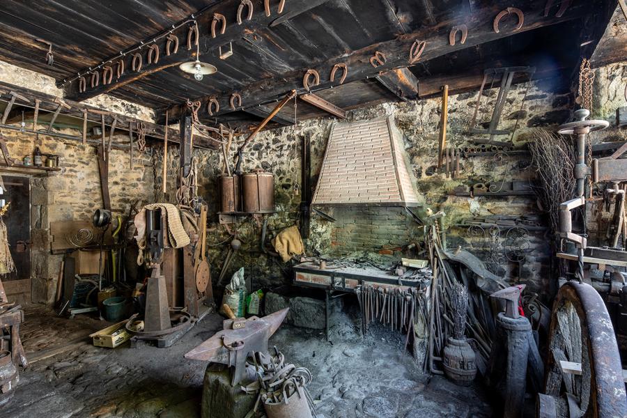 *Visite d'une forge des années 1930 avec son foyer, ses vieux outils, son bruit et son odeur.