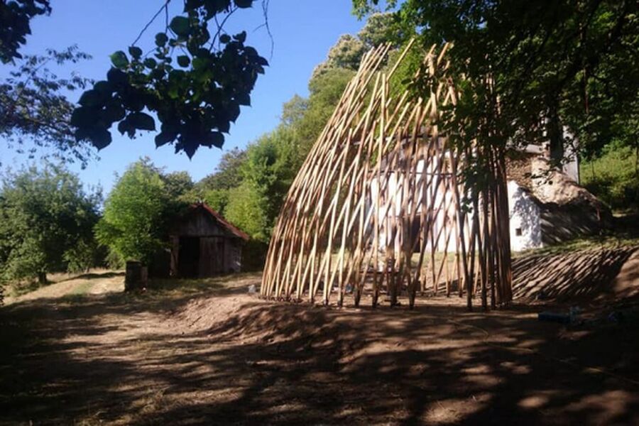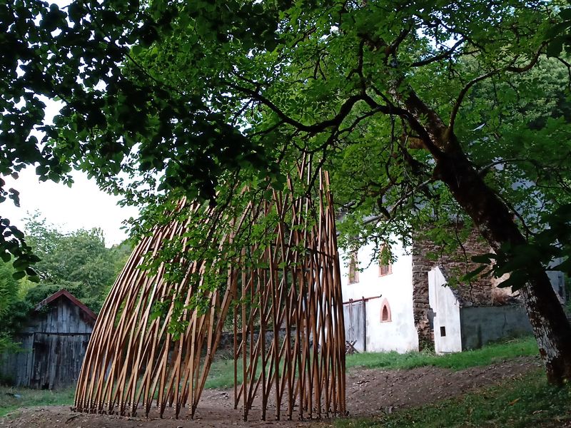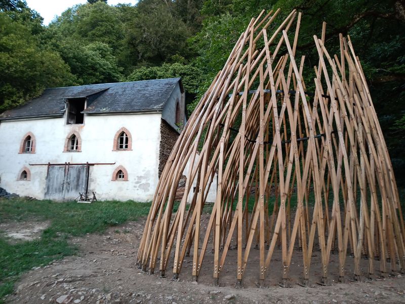 Installée dans l'environnement naturel du couvent de la Thébaïde, elle en marque l'entrée avec légèreté et harmonie. La Vrillette est construite avec du bois cintré à la vapeur. Cette technique a nécessité la conception et la fabrication d’outils spécifiques, un four à vapeur et une machine à cintrer qui permet de produire une infinité de courbes différentes. La Vrillette a été le projet lauréat en 2018 d'un concours qui se déroule à l'Ecole nationale supérieure d'architecture de Paris-La-Villette, la plus grande école d'architecture de Paris. Organisé dans le cadre du cours intitulé «Sculpture tectonique», le concours encourage une réflexion sur l'utilisation d'éléments de section en bois de petite taille pour créer des structures expérimentales à grande échelle.