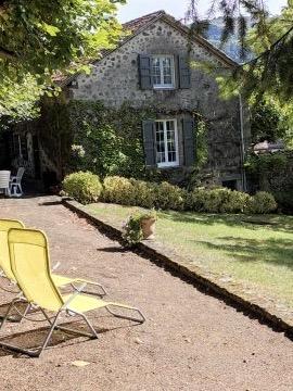 Vous bénéficierez d'un parc arboré entièrement clos de 600 m² avec vue sur la vallée et d'une terrasse avec salon de jardin, chaises longues et barbecue.
