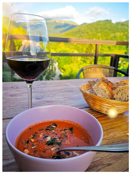 Accueil chaleureux, cadre original, terrasse plein sud. Vue imprenable.