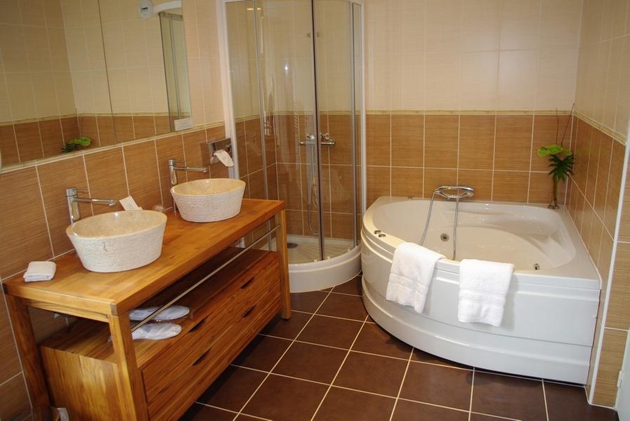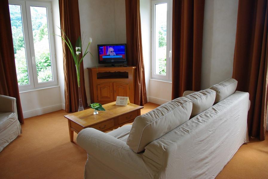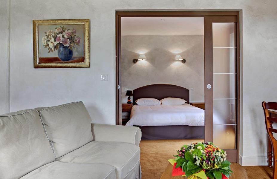 Equipement : salle de bain ou salle d'eau (7 avec douche hydromassante). 2 suites et 2 suites duplex avec baignoire à remous et douche. WC séparés dans toutes les chambres. Balcon privé sur 18 chambres. Sèche cheveux, téléphone et TV écran plat. Salle à manger ouverte sur le parc, le restaurant met à l'honneur les produits régionaux et une cuisine traditionnelle. Le bar d'époque 1950, de style rétro est ouvert sur sa terrasse ombragée. 3 salons pour repas ou séminaire.