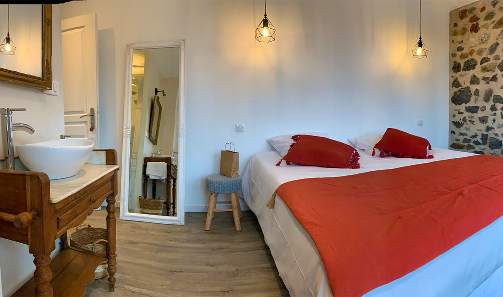 Quatre chambres disposant d'un grand lit, d'une salle d'eau et de WC privatifs. Chauffage par le sol et poêle à granulés. Très belle vue sur les paysages de l'Aubrac.