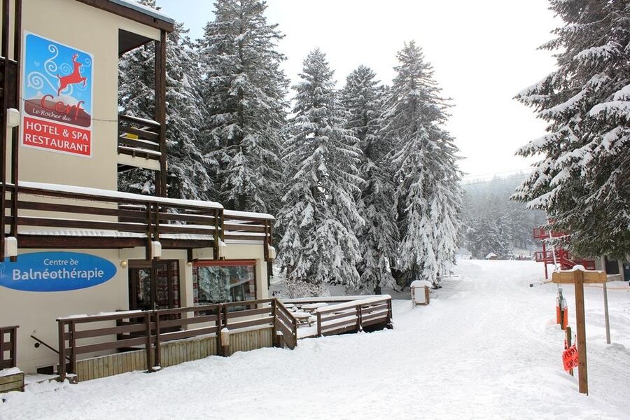 L'hôtel du Rocher du Cerf est idéalement situé en plein cœur de la station du Lioran et au pied du domaine skiable et des chemins pédestres.