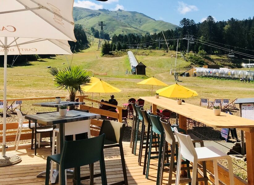 Ainsi que nos boissons chaudes, bières, vins chauds et cocktails servis tout au long de la journée sur notre terrasse panoramique avec point de vue à couper le souffle sur le Plomb du Cantal.