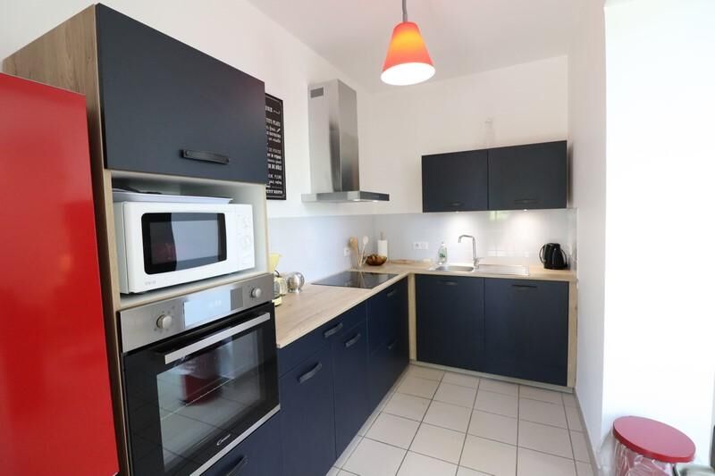 Gîte comprenant un coin-cuisine aménagé, un séjour avec poêle (bois gratuit) et TV écran plat, 1 chambre avec 1 lit (160), 1 chambre avec 2 lits (90), salle d'eau avec WC – Cour et terrain semi-clos avec salon de jardin, barbecue et chaises longues.