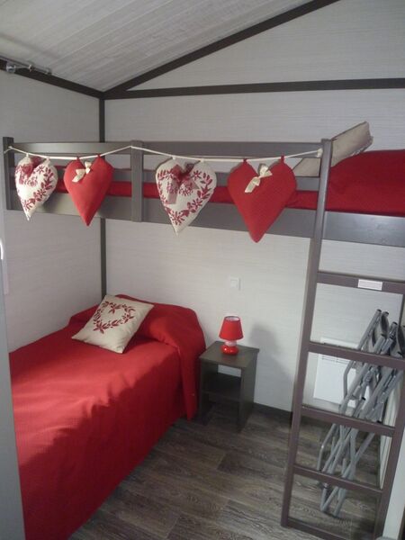 A proximité du bourg de Vic sur Cère, maison indépendante en bois de 2010 dans un enclos de 5000m² comprenant deux autres chalets. Séjour, coin cuisine. 1 ch. (1 lit 160), 1 ch. (1 lit 2 pers.), 1 ch. (1×2 lits superp. 80). Salle d'eau. Wc indépendant. Ch. électrique. TNT, téléphone portable sur demande. Terrasse. Toutes charges comprises en haute saison.