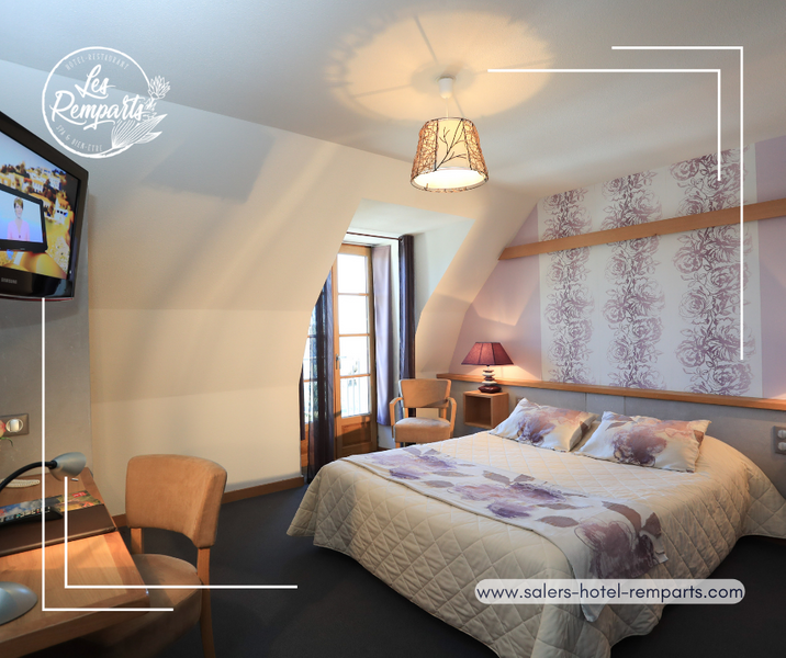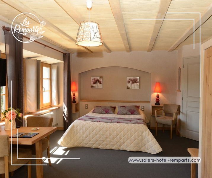 Les 15 chambres spacieuses sont toutes équipées de lits en 160 ou lits jumeaux en 90, avec WC indépendants et douches à l'italienne. Situées à l'étage pour 14 d'entre elles, les chambres offrent de jolies vues tantôt sur le Puy Violent, la vallée de la Maronne, les toits de Salers ou la campagne environnante. L'établissement est doté d’un ascenseur donnant un accès direct à l'espace bien-être et à la salle de restaurant.