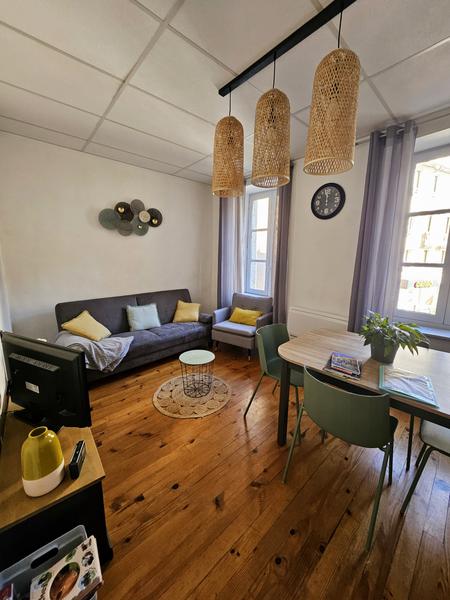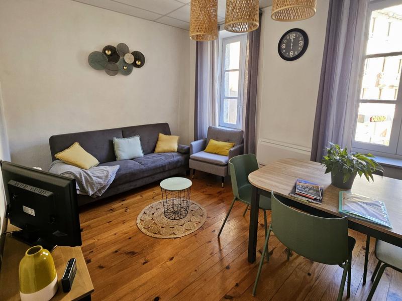 Lumineux et fonctionnel, il se situe en plein centre, au pied des commerces et à 400m. du centre thermal.