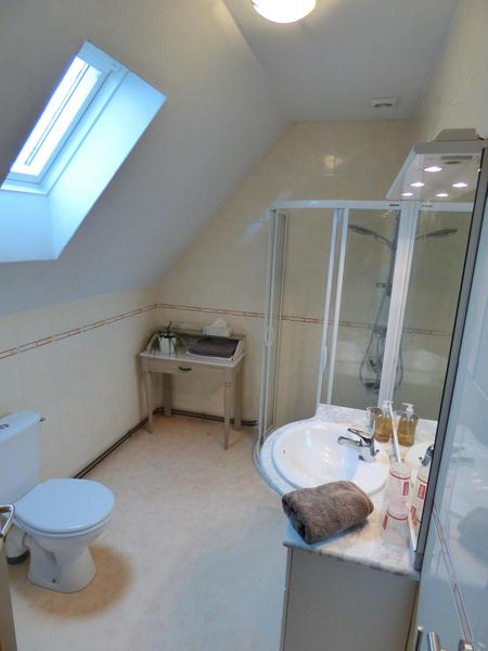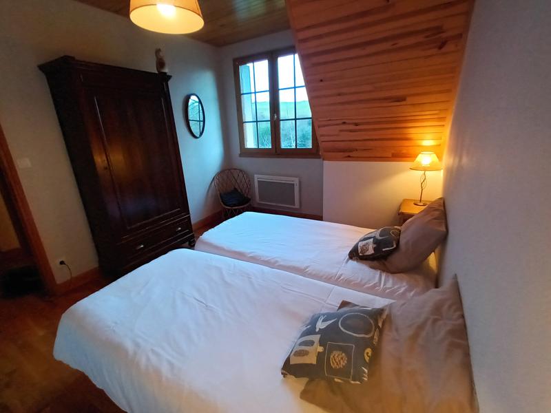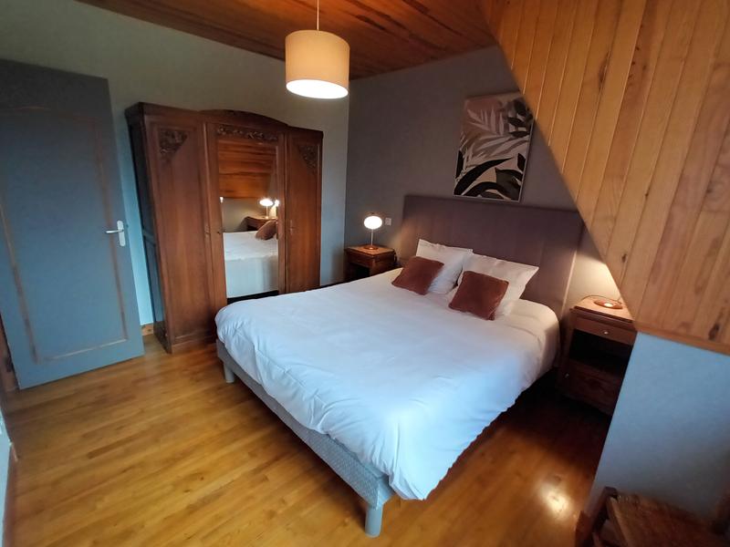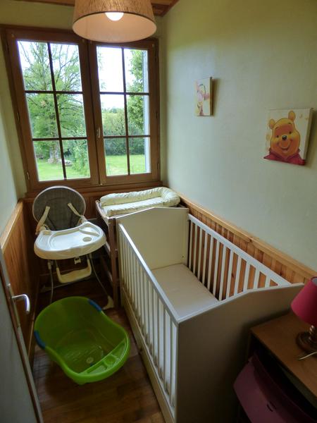 Au 1er étage : 1 chambre lit 160cm, 1 chambre 2 lits 1 personne, 1 petite chambre bébé (équipement à disposition), SDE avec WC. Toutes les chambres sont équipées de volets roulants solaires et de moustiquaires.