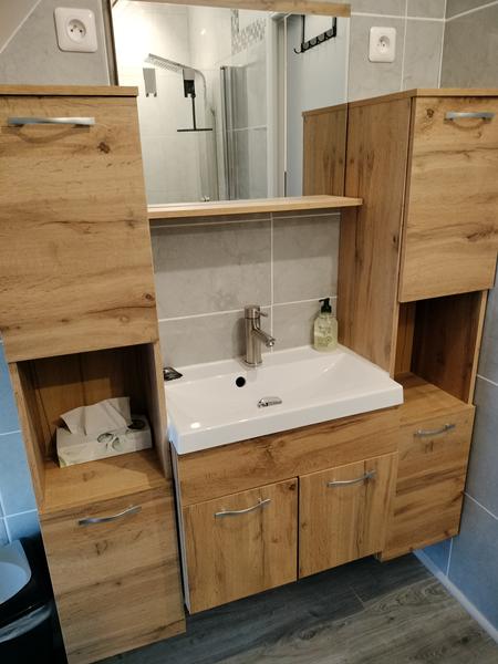 La maison est composée d'une cuisine ouverte sur salon salle à manger, elle est équipée d'un piano de cuisson et d'un frigo américain, idéal pour les séjours en famille. Vous trouverez 2 chambres en 160cm, 1 chambre familiale avec lit en 160cm et un lit bébé avec table à langer et une chambre avec 2 lits de 90cm. Toutes les chambres sont équipées de penderies et la maison compte 2 wc et 2 salles de bain (douches).