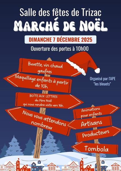 L'APE "Les Bleuets" organise un marché de Noël au profit des enfants de l'école de Trizac, le dimanche 7 décembre dès 10h.