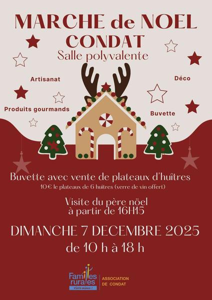L’association Familles Rurales de Condat est ravie de vous annoncer son traditionnel marché de Noël, le dimanche 7 décembre dès 10h !