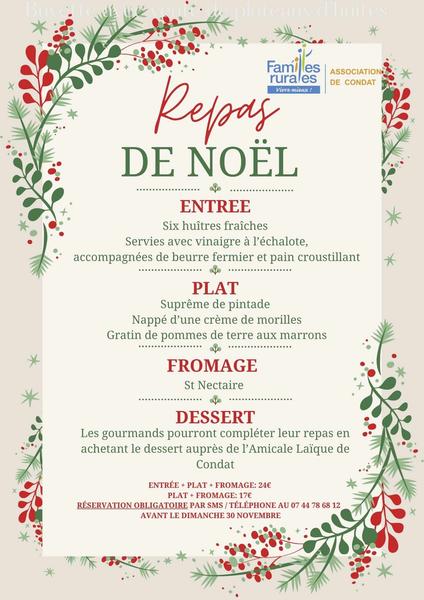 Réservation pour le repas obligatoire avant le dimanche 30 novembre.