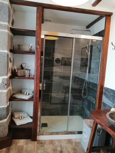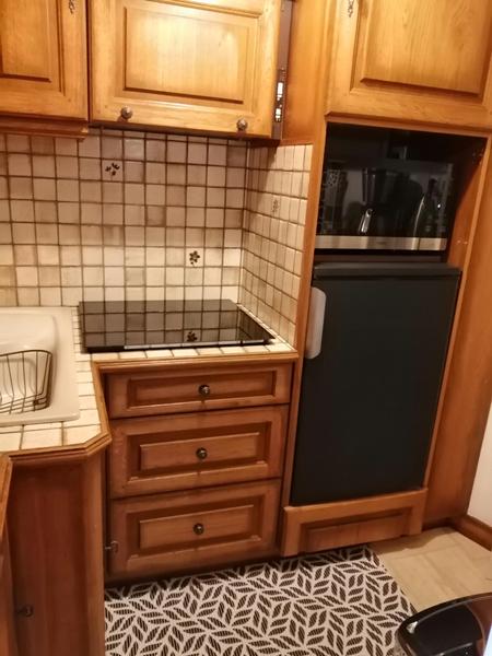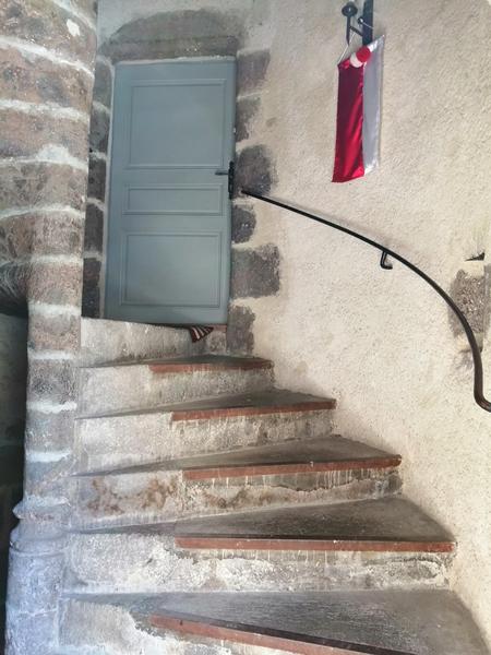 Accès par la tour , 1er niveau : entrée , wc , salon avec espace repas , cuisine équipée