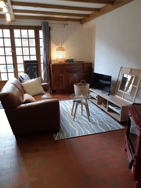 1er étage : pièce de vie avec salon, TV, salle à manger et cuisine ouverte équipée, lave-vaisselle – Terrasse.