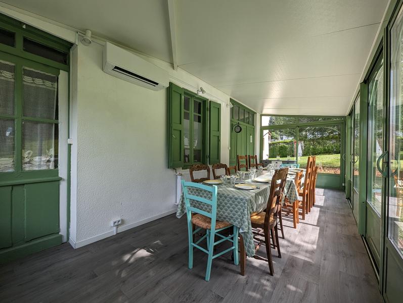 Vous disposerez également d'un salon de jardin, d'un barbecue et d'une balançoire. La véranda qui sert de salle à manger est chauffée l'hiver et peut être refroidie l'été grâce à sa climatisation. Dans la cour (fermée) vous pourrez garer facilement 3 à 4 voitures.