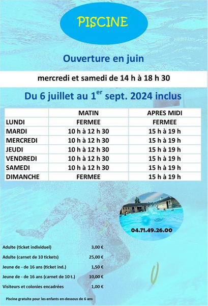 Enfant (6-15 ans) : 1,50 € (Carnet de tickets 10€).