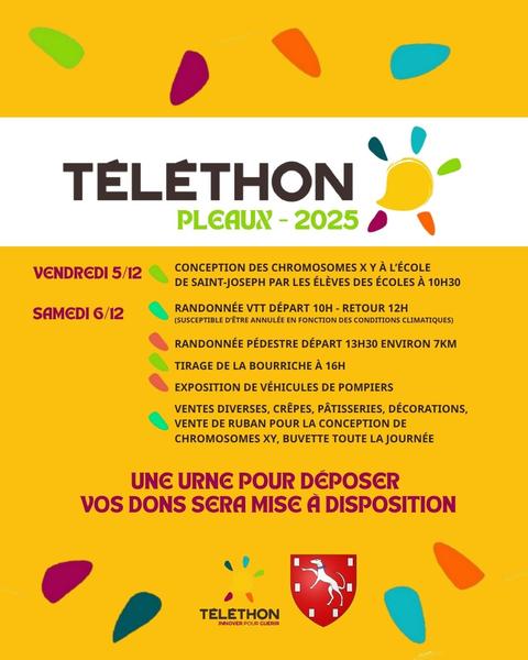 La municipalité de Pleaux vous invite à participer aux animations au profit du Téléthon
