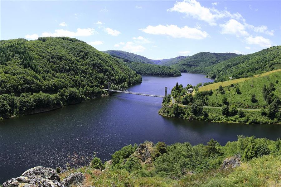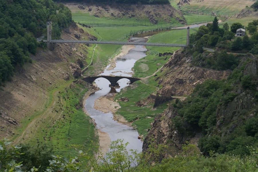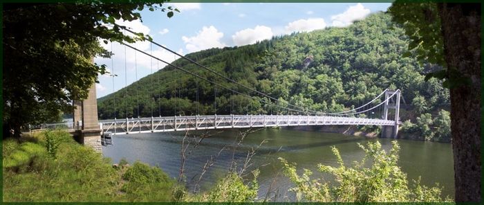 Ce pont suspendu traversant la Truyère a été construit lors de l'installation du Barrage de Sarrans en 1934/1935.