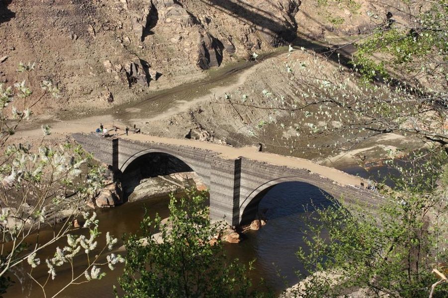 Dans l'eau en-dessous se trouve encore le vieux pont en pierre classé MH construit au XIVe siècle par les Anglais pour franchir la Truyère. Lors que l'eau est basse on voit encore apparaître les vieilles pierres de ce pont encore bien intacte. Pendant la vidange du Lac de Sarrans en 2014, des rénovations on été faites pour le stabiliser les piliers.