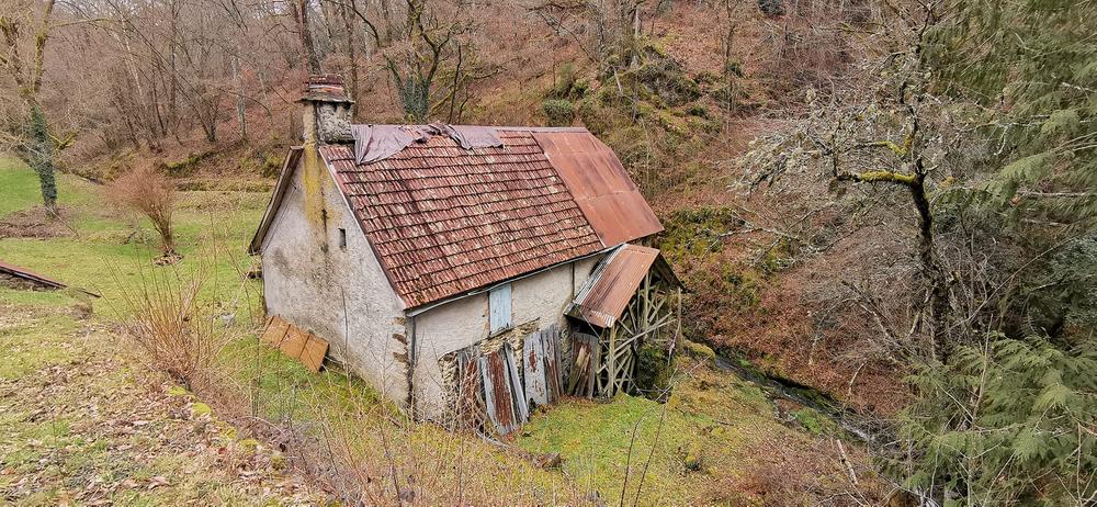 1 : Prendre le sentier sur la droite dans ce hameau, passer devant une ancienne scierie. Dans le bois, prendre à droite au Y puis à gauche un chemin qui descend ; passer un pont et remonter jusqu’à l’ancien moulin de Falgères.