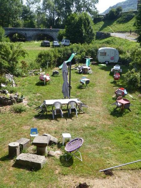 Café-Guinguette associatif. Au bord de l’Alagnon, un lieu clairsemé de mares entourées de verdure, de plantes, de fleurs et d'arbres fruitiers, pour manger et flâner en famille, seul.e ou entre ami.e.s. Entre Murat et Neussargues.