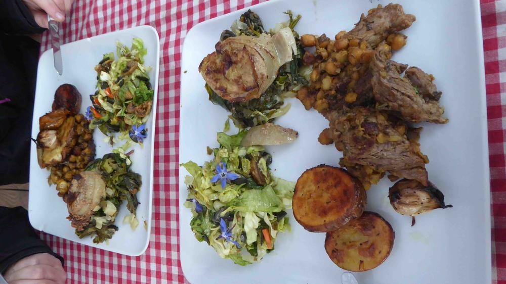 A manger : deux propositions qui varient en fonction des produits du moment : carnivore ou végétarienne. (ouvert aux régimes particuliers sur demande préalable) / planches mixtes de charcuteries, fromages, tartinades maison /