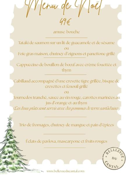 Menu de Noël proposé par le restaurant Bellevue du Cantal