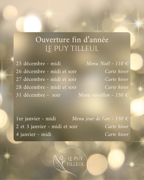 Le Puy Tilleul organise un menu de Réveillon pour le Nouvel an