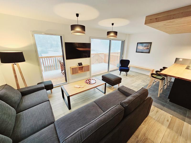 Dans une résidence neuve, ce splendide duplex de 120m² à louer pour 13 personnes. L’appartement est idéalement situé, au cœur de la station, avec un accès direct à pied au télésiège de Masseboeuf.