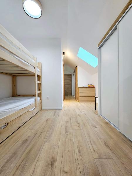 – A l’étage : deux chambres avec lits doubles, deux coins montagnes comprenant un lit superposé chacun (90x190cm), une salle de douche et un toilette séparé.