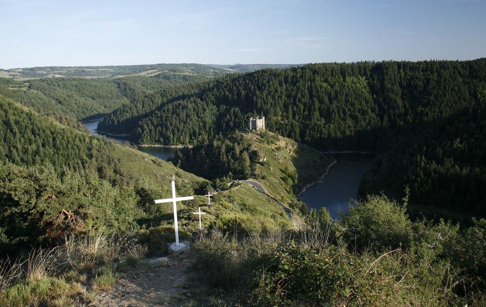Magnifique site surplombant la vallée de la Truyère avec un château classé Monument Historique et une église inscrite aux Monuments Historiques.