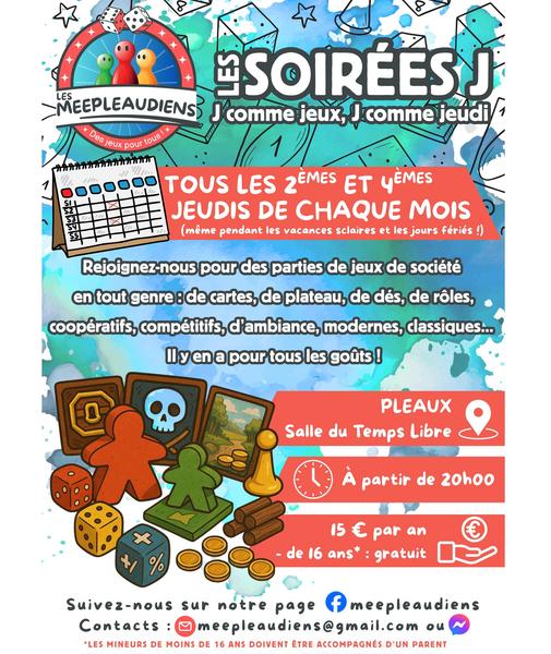 Les amateurs de jeux de société, petits et grands, sont invités à se retrouver à Pleaux pour des soirées dédiées au plaisir du jeu ! Chaque 2ème et 4ème jeudi du mois, à partir de 20h00, vivez un moment ludique et intergénérationnel.