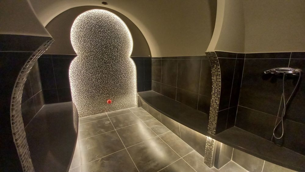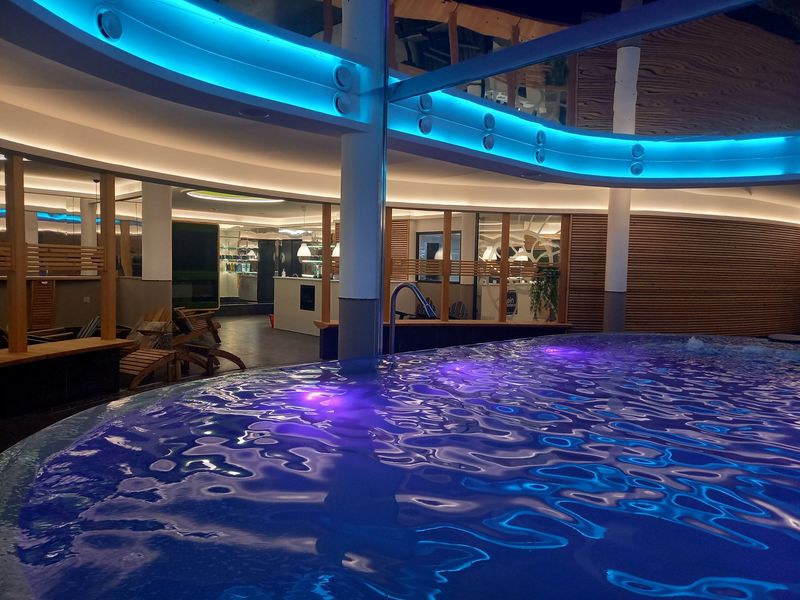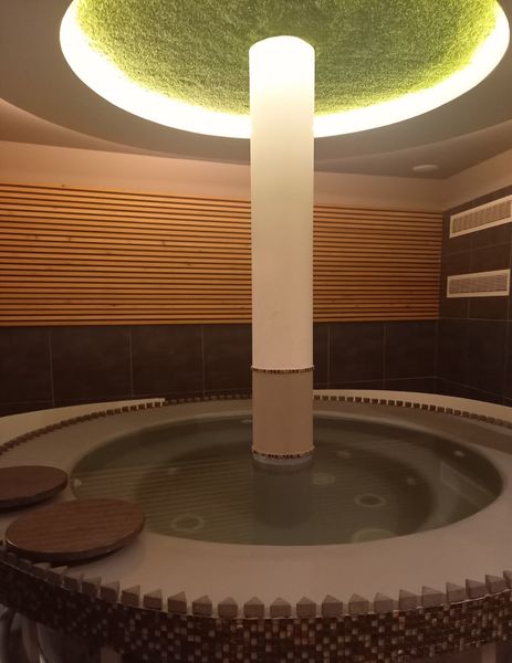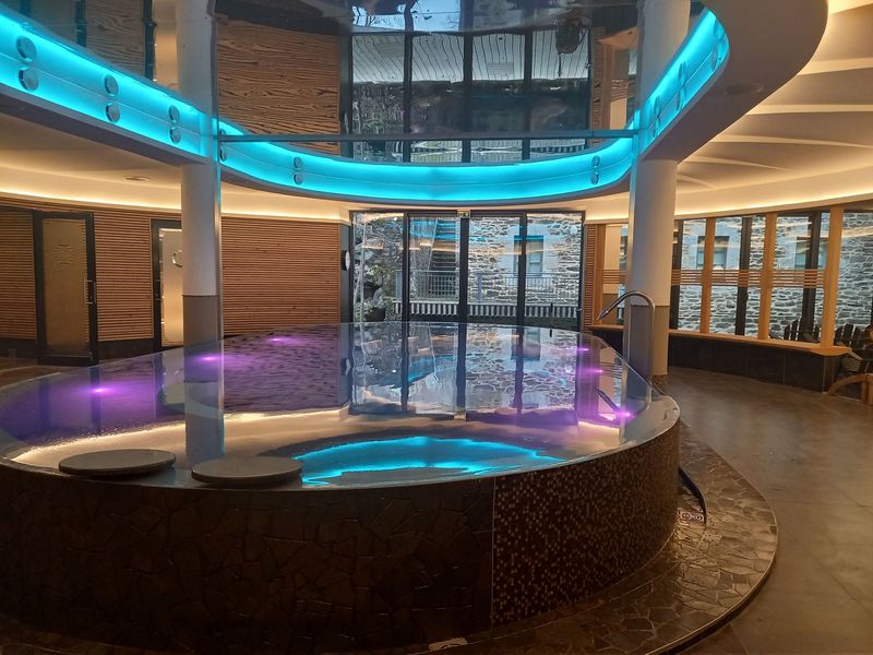 Au cœur de la cité thermale, cet espace balnéothérapie propose un bassin à débordement, sauna, hammam, salon acoustique, tisanerie, cabines de soins…