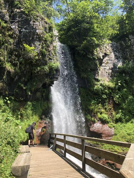 Cette longue étape permet d'évoluer sur un terrain varié entre vallées, plateaux et forêts. Le tracé permet d'accéder à de nombreux sites naturels d'exception : cascade du saut de la truite, cirque de Grandval, col de Prat de Bouc, cascade de Prapsou….