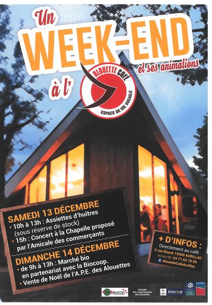 samedi : 10/13h; assiettes d'huitres (sous réserve de stock); 15h concert à la chapelle