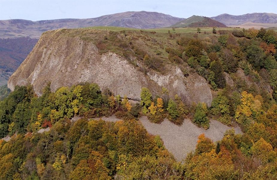 La vallée est surplombée par un gigantesque bouchon de lave qui évoque le profil d'une tête de lion (en venant du Col de la Griffoul au niveau du village d' Arzaliès, regarder sur votre droite).
