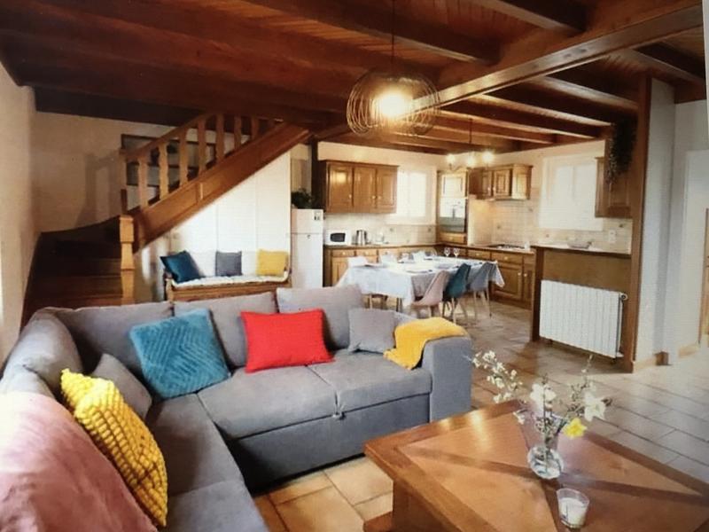 Rez de chaussé pièce commune cuisine, salon, toilette.